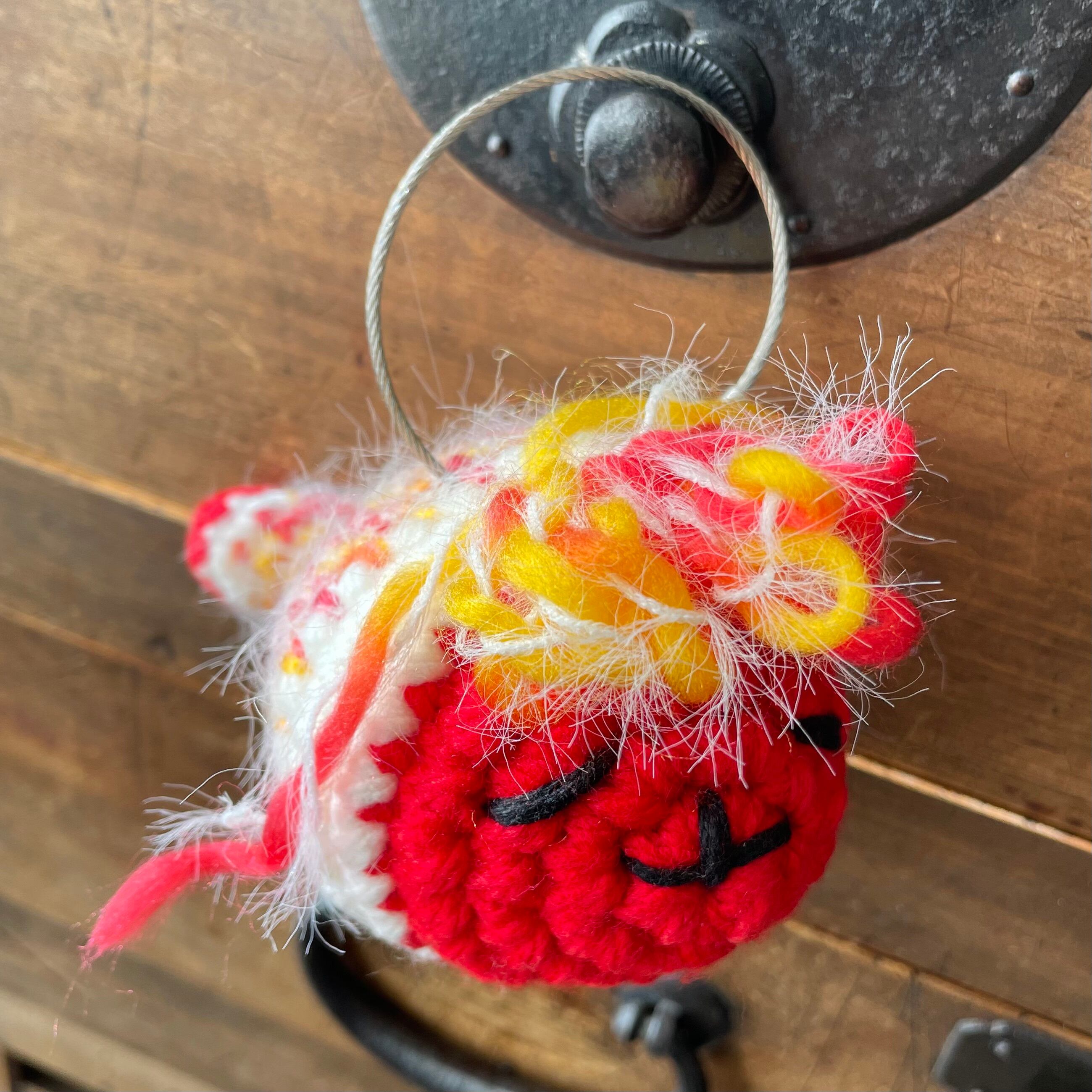 ・2025年10月に「編み物男子展 vol.1 〜赤で編むホゥ!〜」にて展示し、2025年11月に「デザインフェスタ vol.62」で販売した作品「赤いリーゼントおたま」のひとつです。